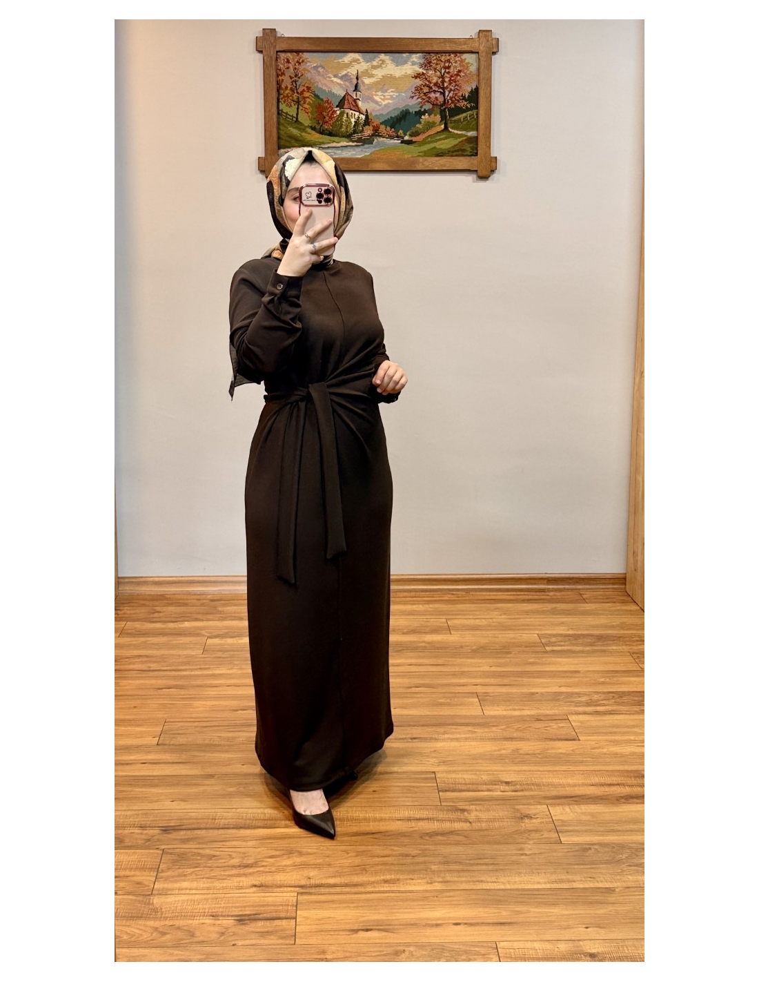 N PRİVE BELDEN BAĞLAMALI ELBİSE F13230  KAHVE