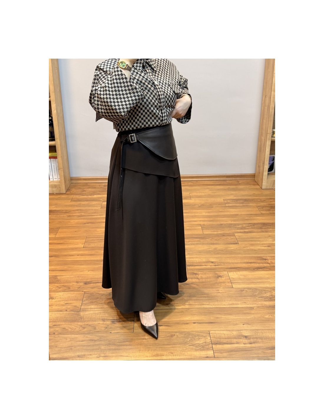 ALVİNA DERİ DETAYLI ETEK 60708 KAHVE