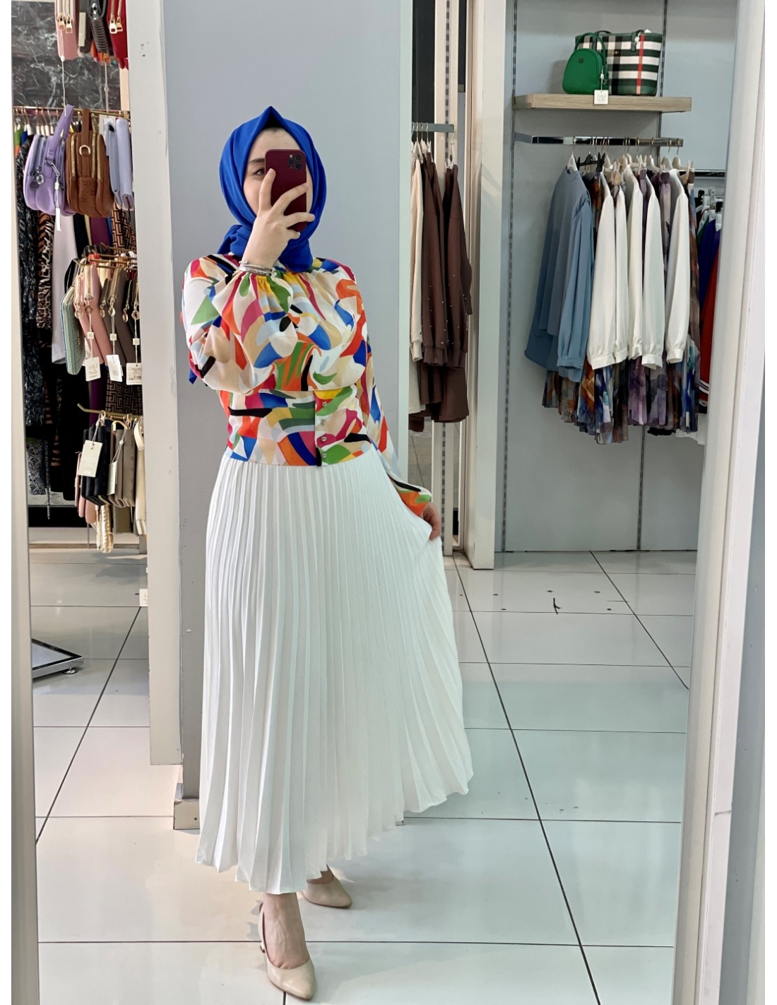 • Etek beli lastikli, bluz arka bel kısmı lastiklidir