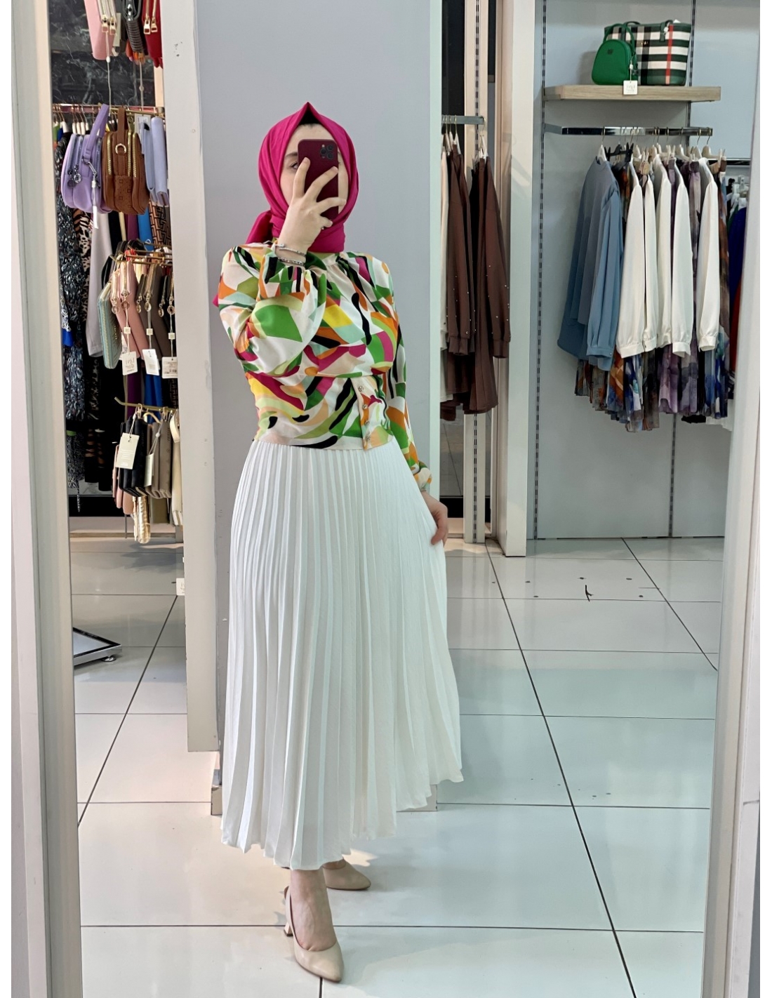 • Etek beli lastikli, bluz arka bel kısmı lastiklidir