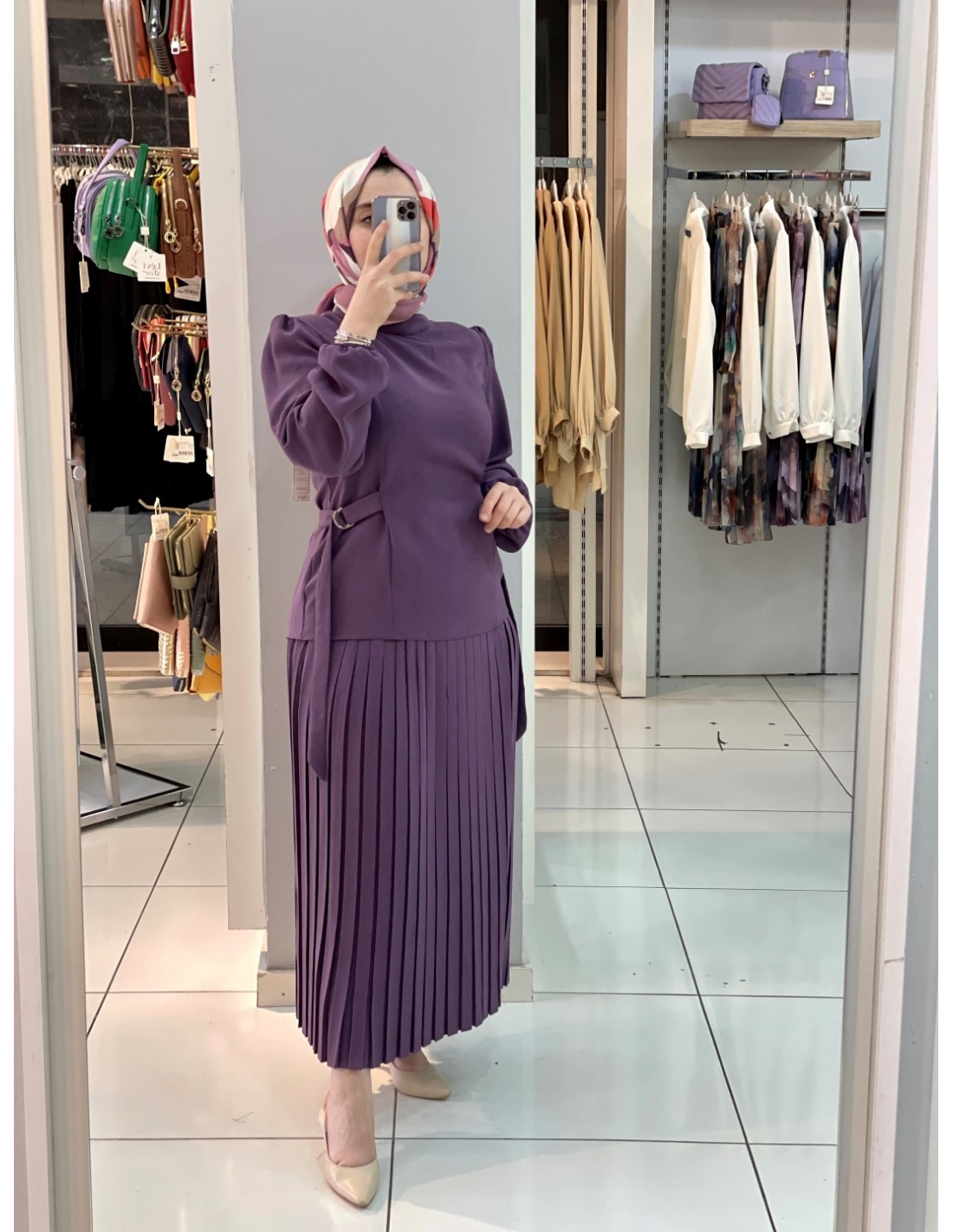 Özkayalar Belden Bağlamalı Plise Takım LİLA