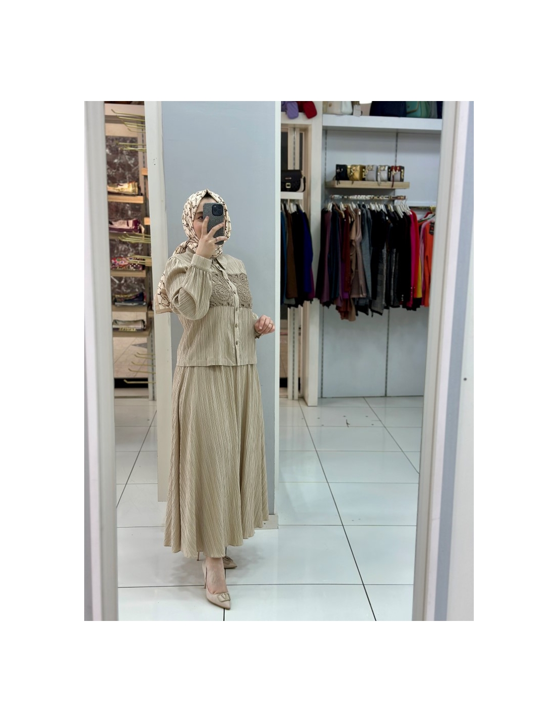 LEVİDOR GÜPÜRLÜ KETEN TAKIM 130999 BEJ