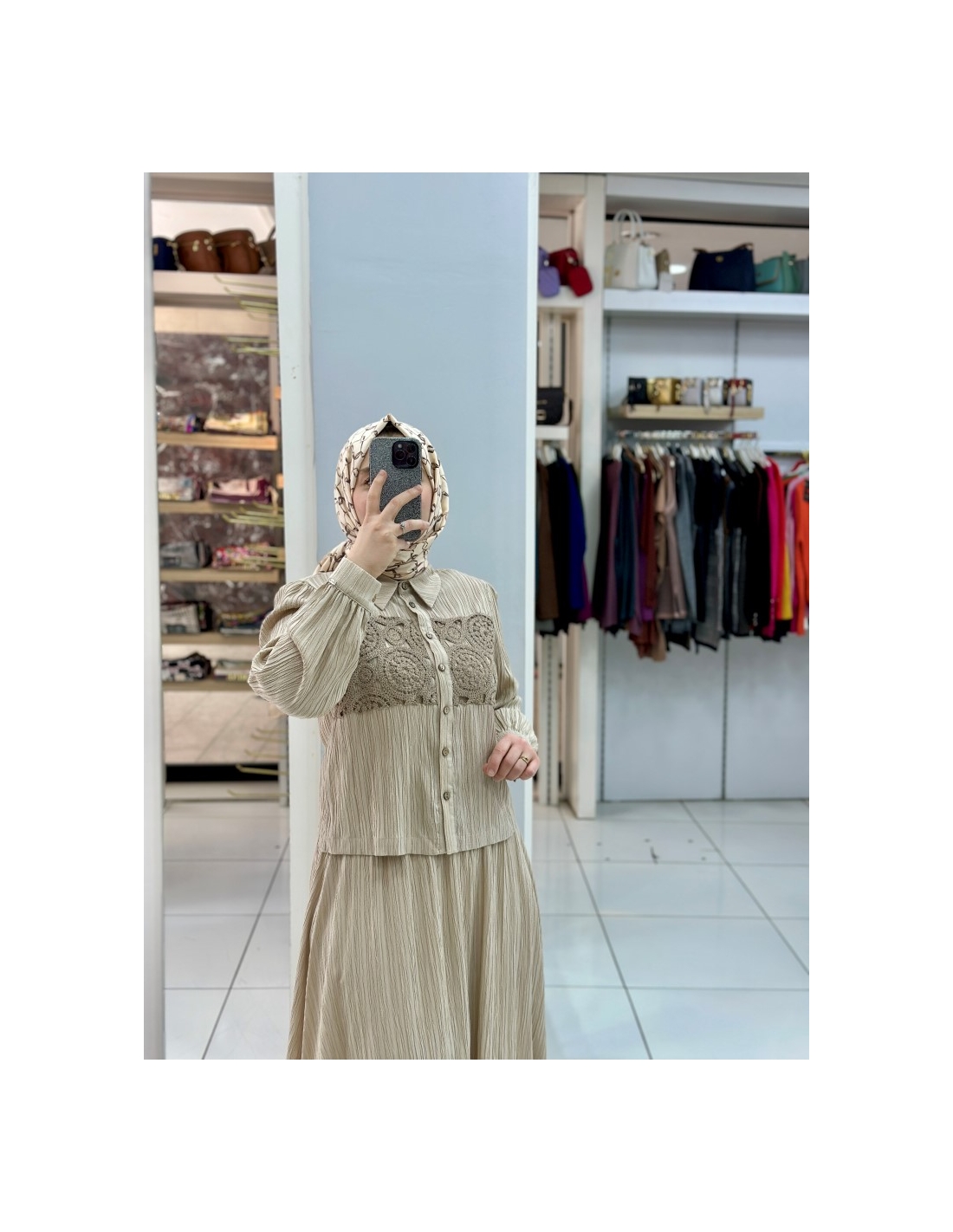 LEVİDOR GÜPÜRLÜ KETEN TAKIM 130999  BEJ