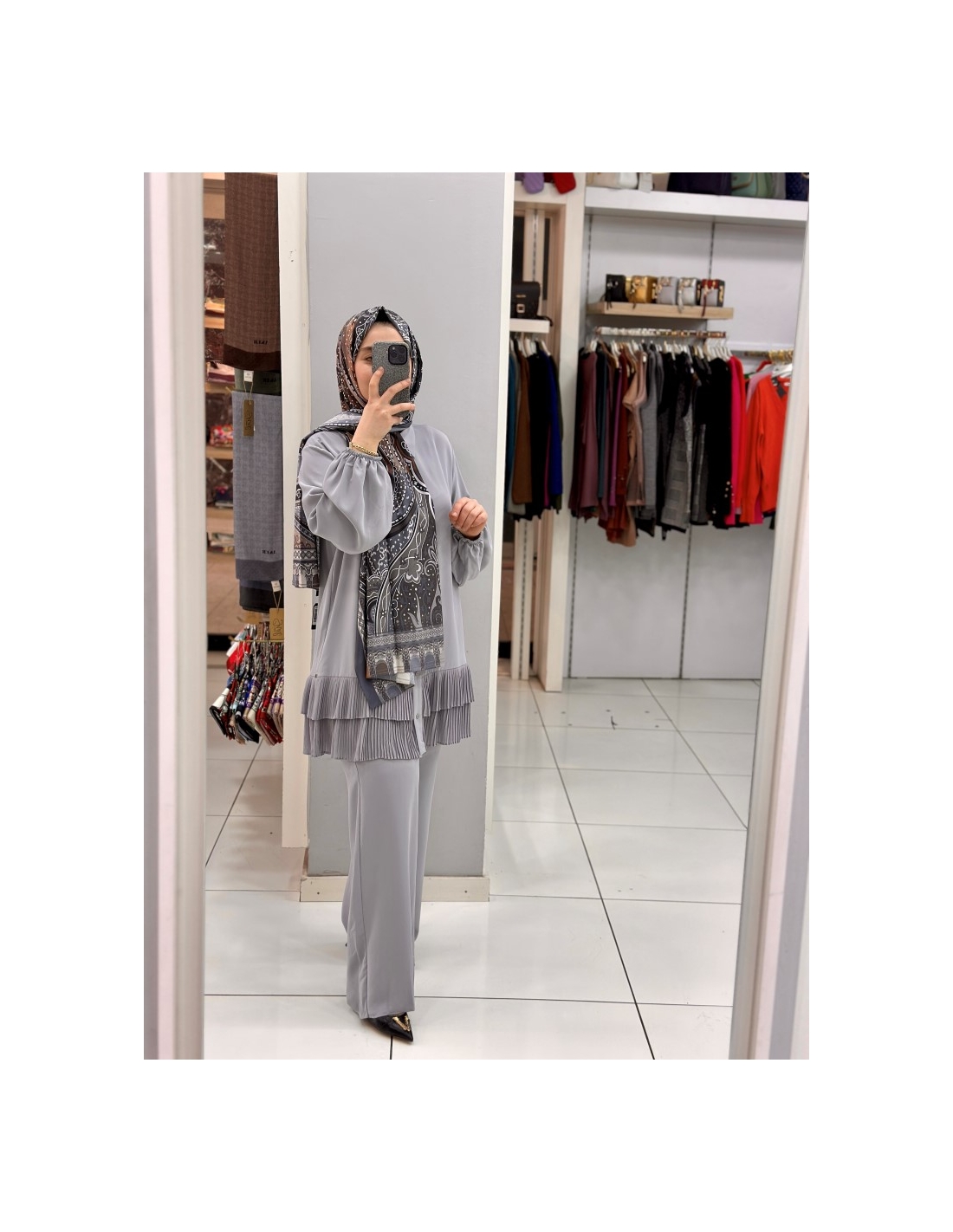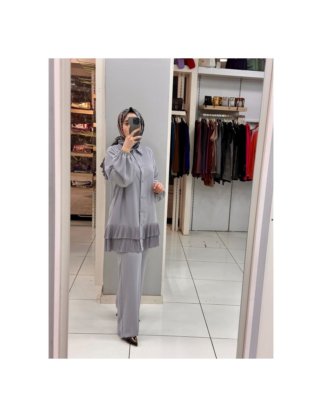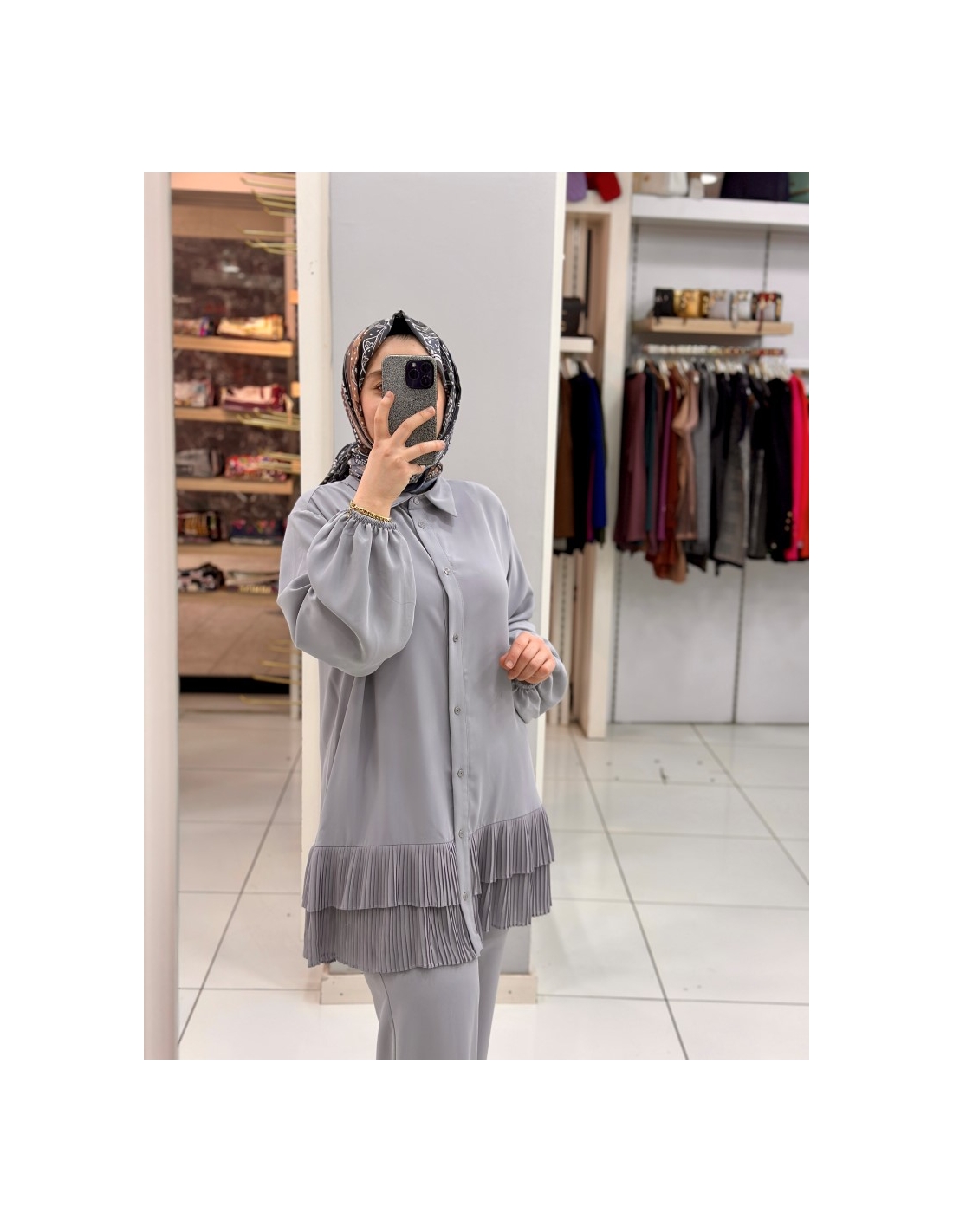 Levidor Plise Pantolon Takım 100281 gri