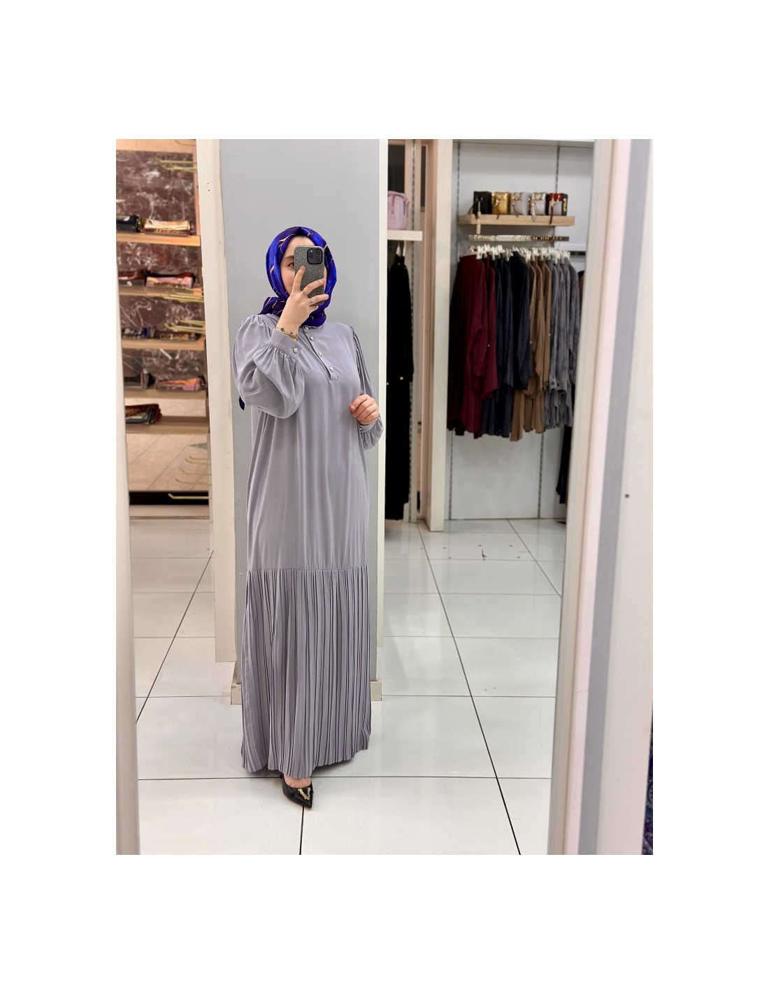Levidor Plise Elbise 330183 gri