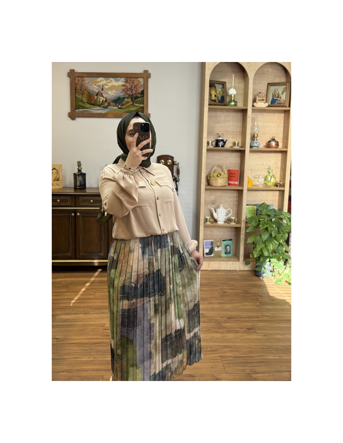LEVİDOR BEYMEN PLİSE ETEKLİ TAKIM 131043 HAKİ