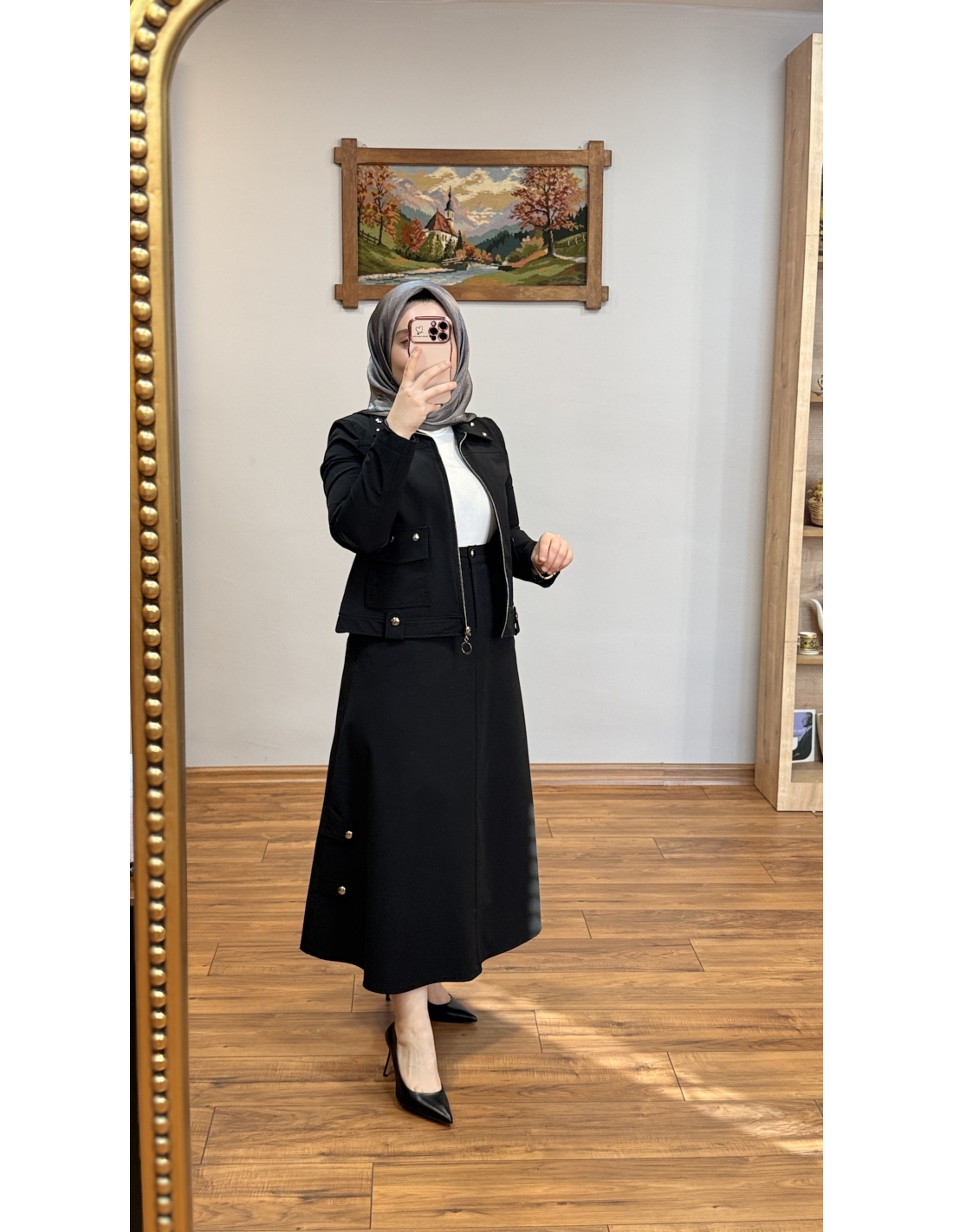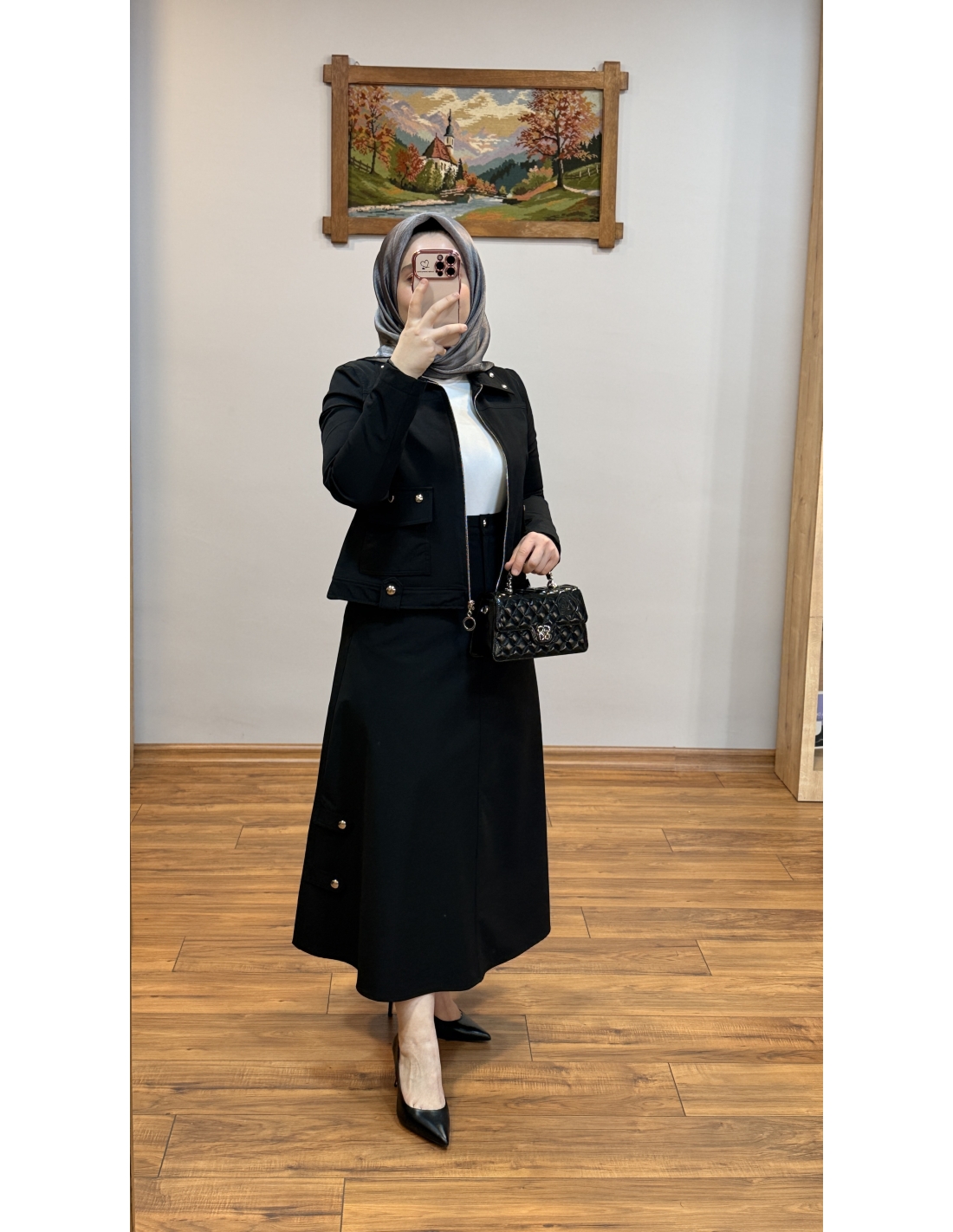 N PRİVE METAL AKSESUARLI TAKIM F15219 SİYAH