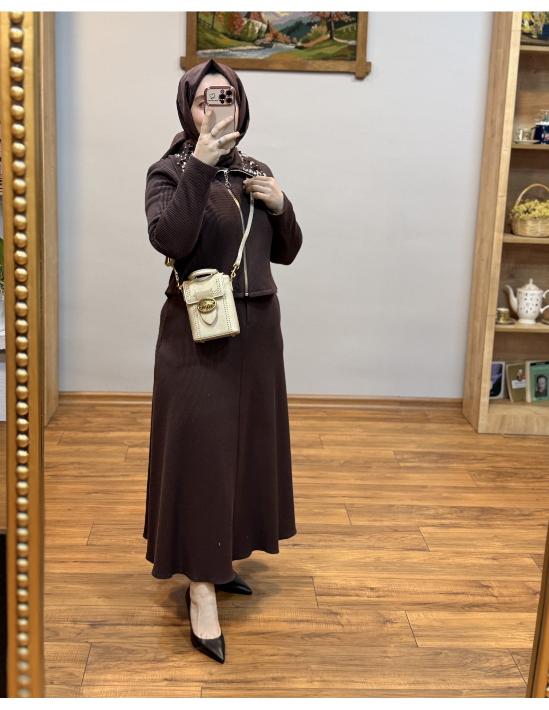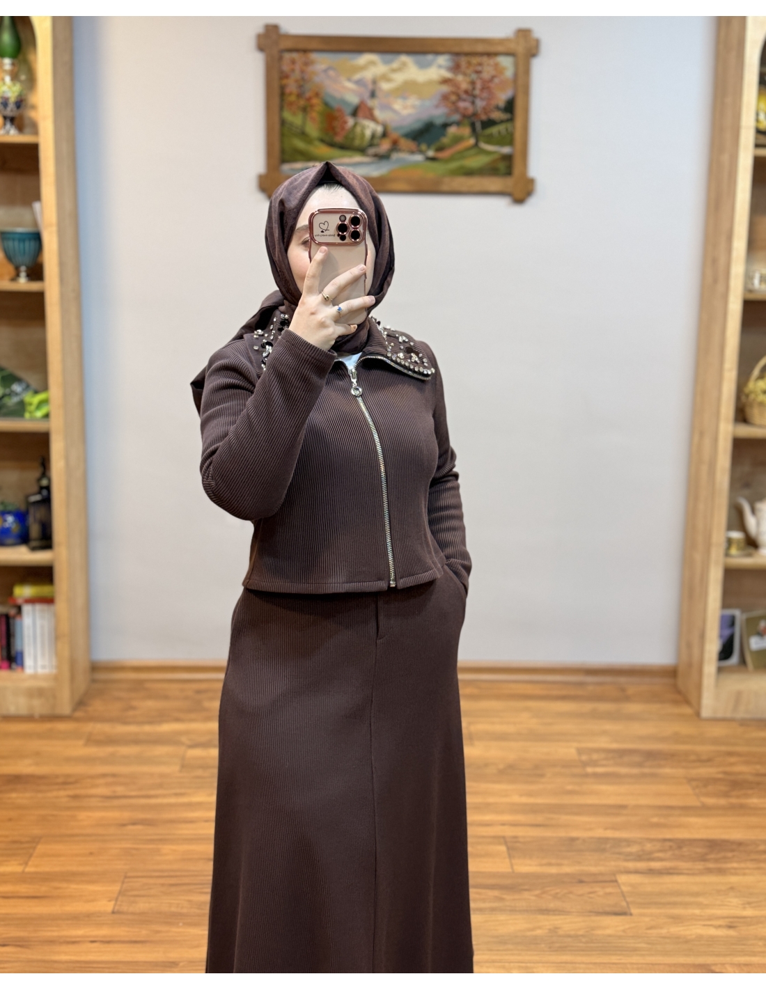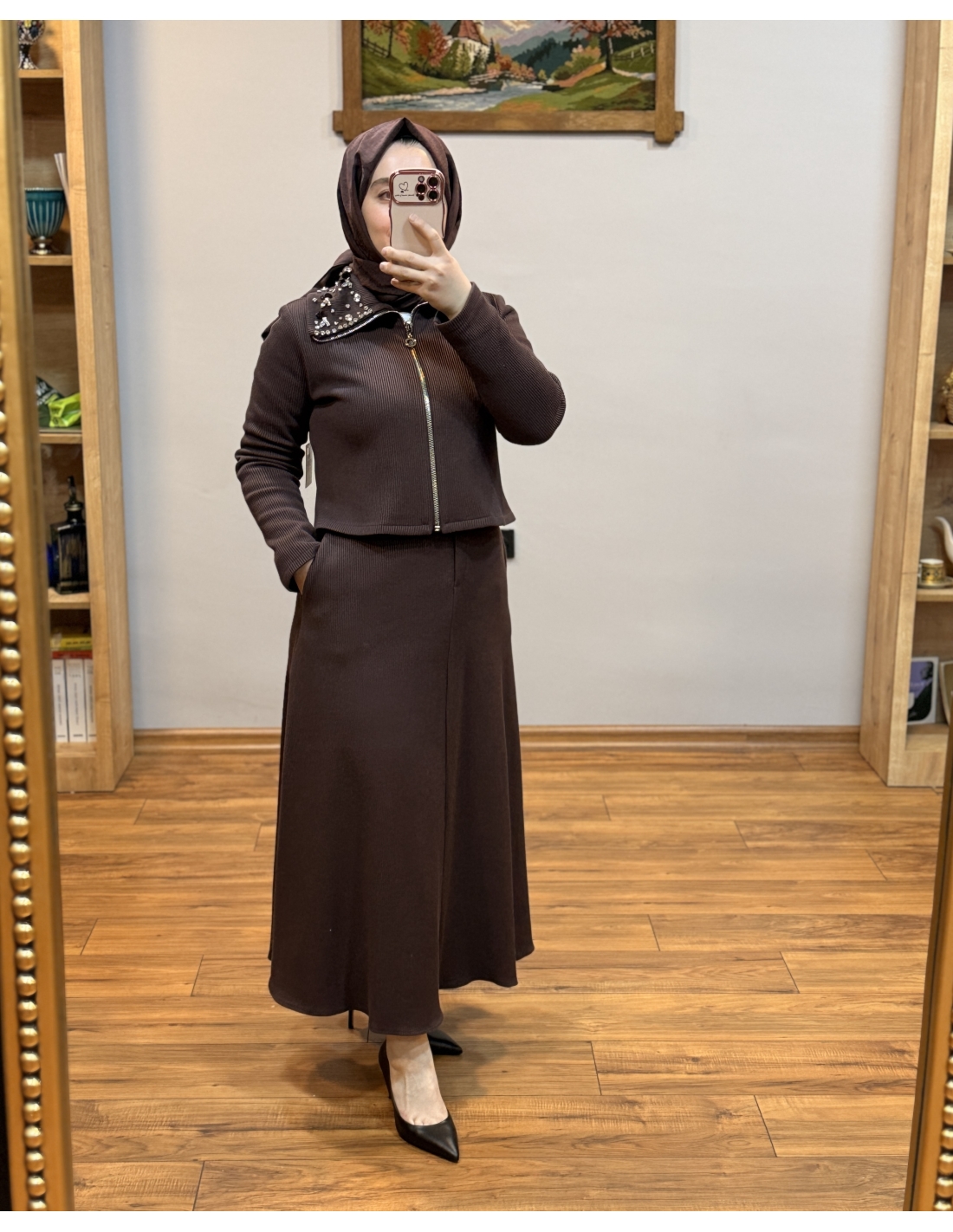 N PRİVE F19500 YAKA DET ETEKLİ TAKIM KAHVE