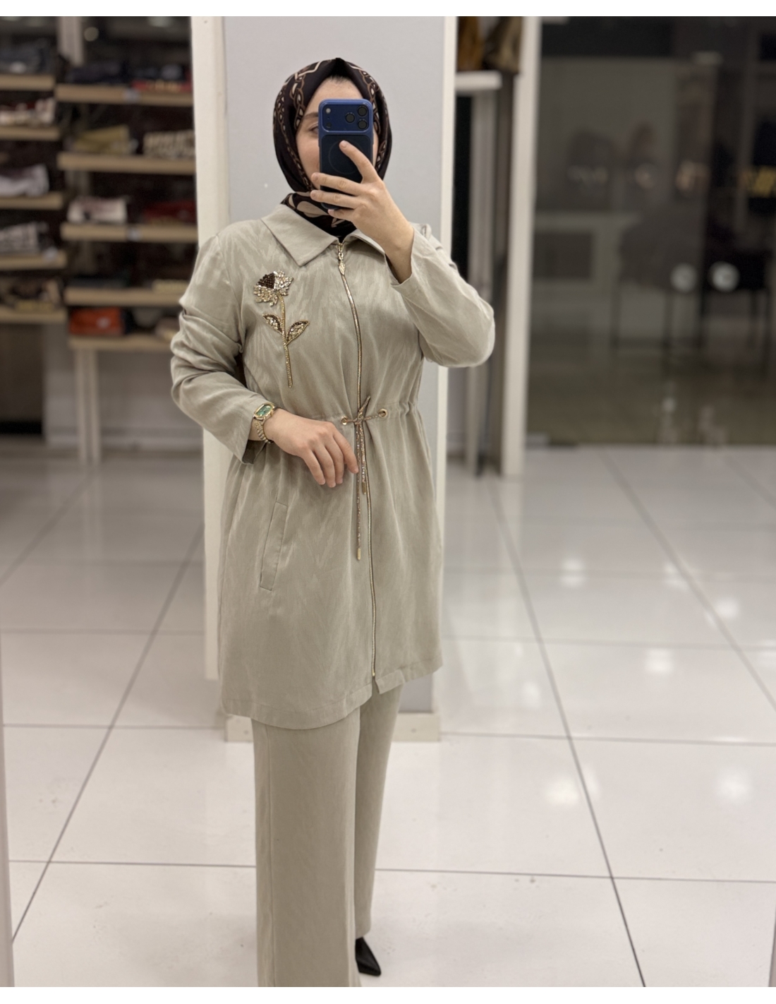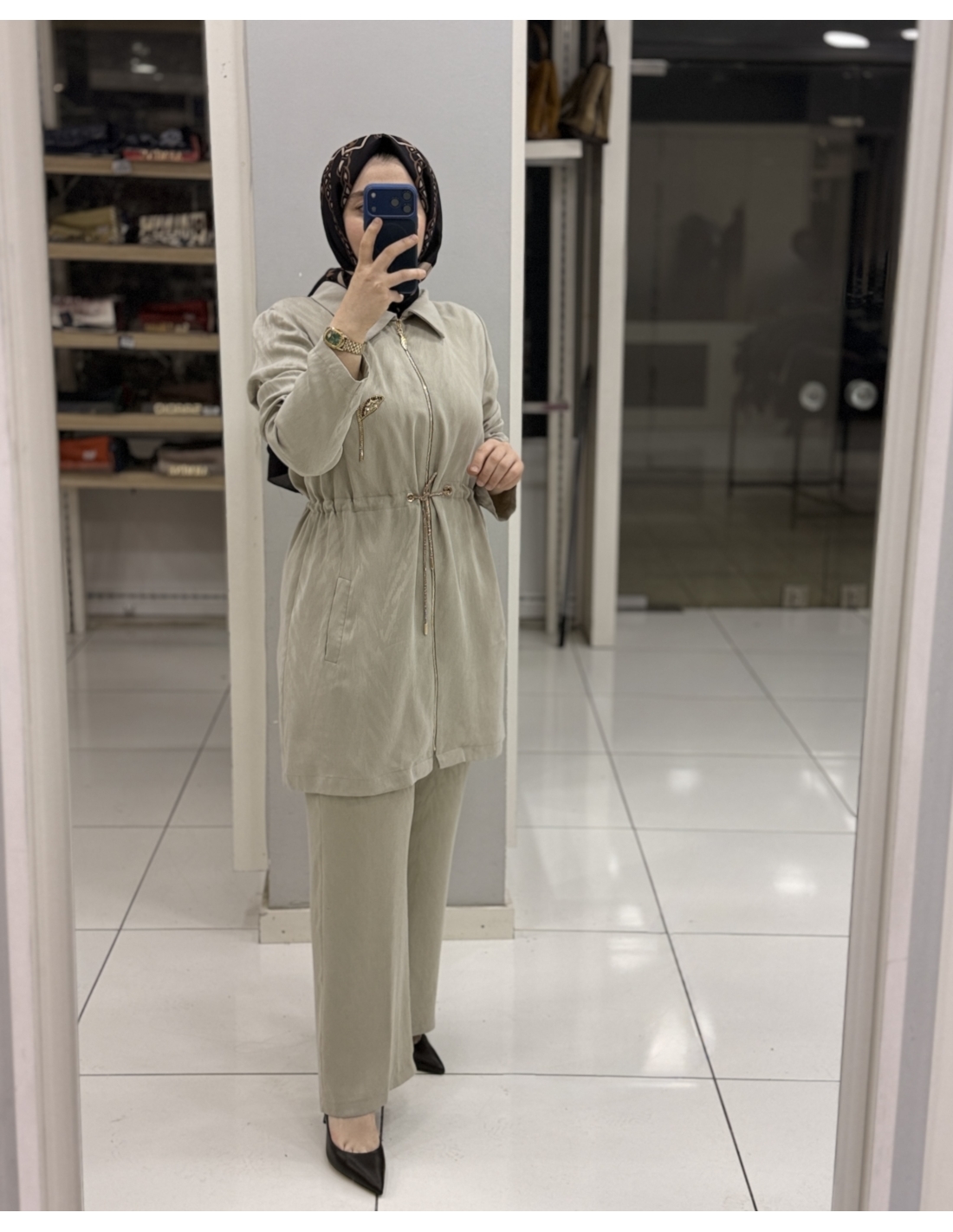 - 3 beden ölçüleri: göğüs 114cm, tunik bel 106 cm , basen 120 cm pantolon bel 84cm