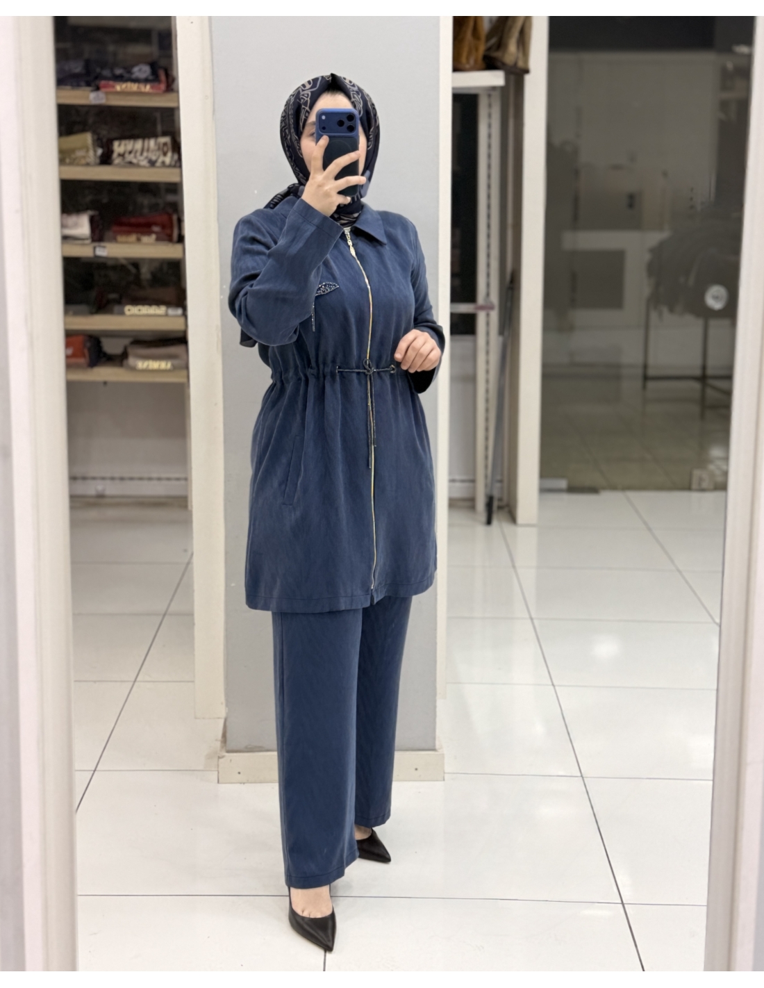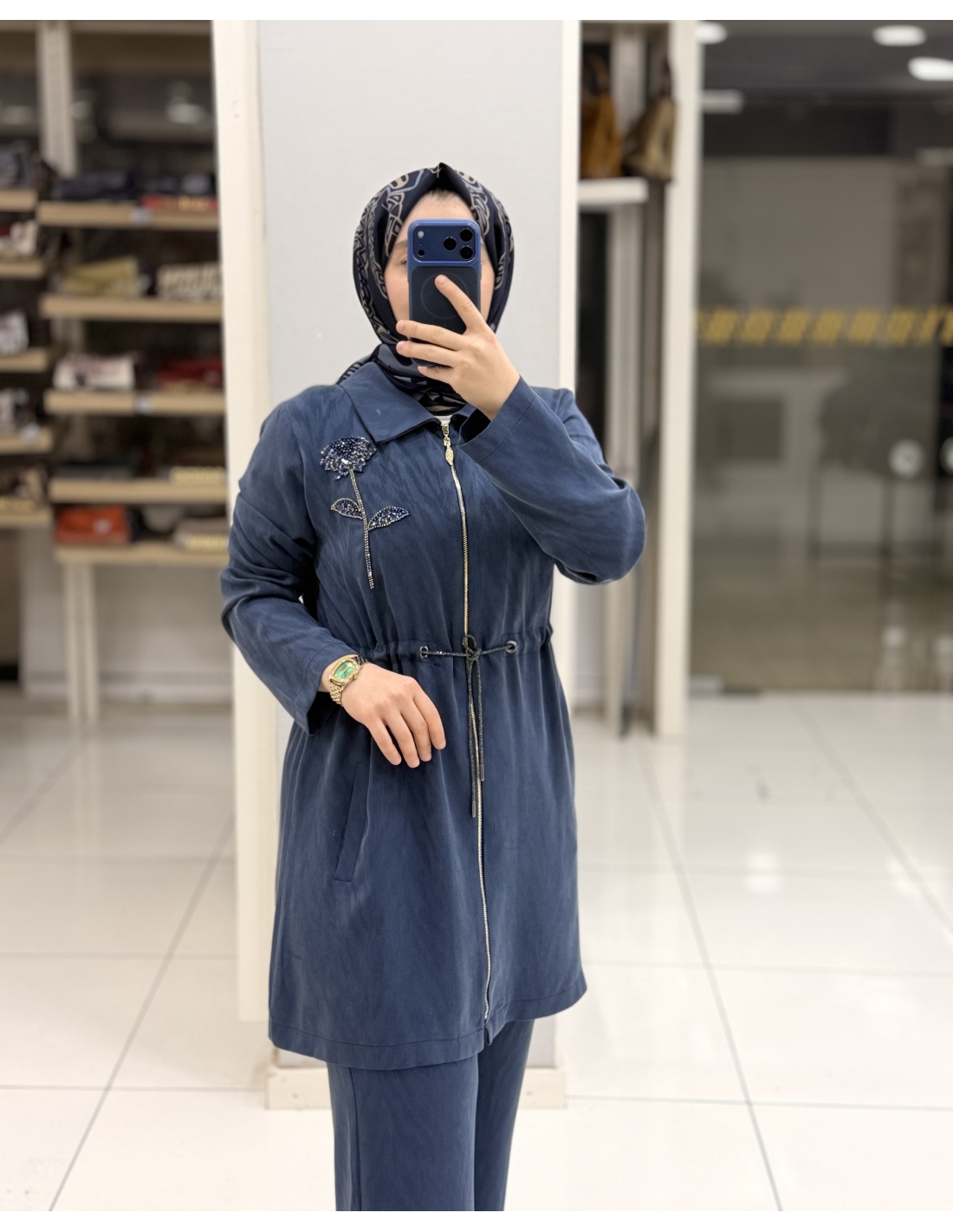 - 3 beden ölçüleri: göğüs 114cm, tunik bel 106 cm , basen 120 cm pantolon bel 84cm