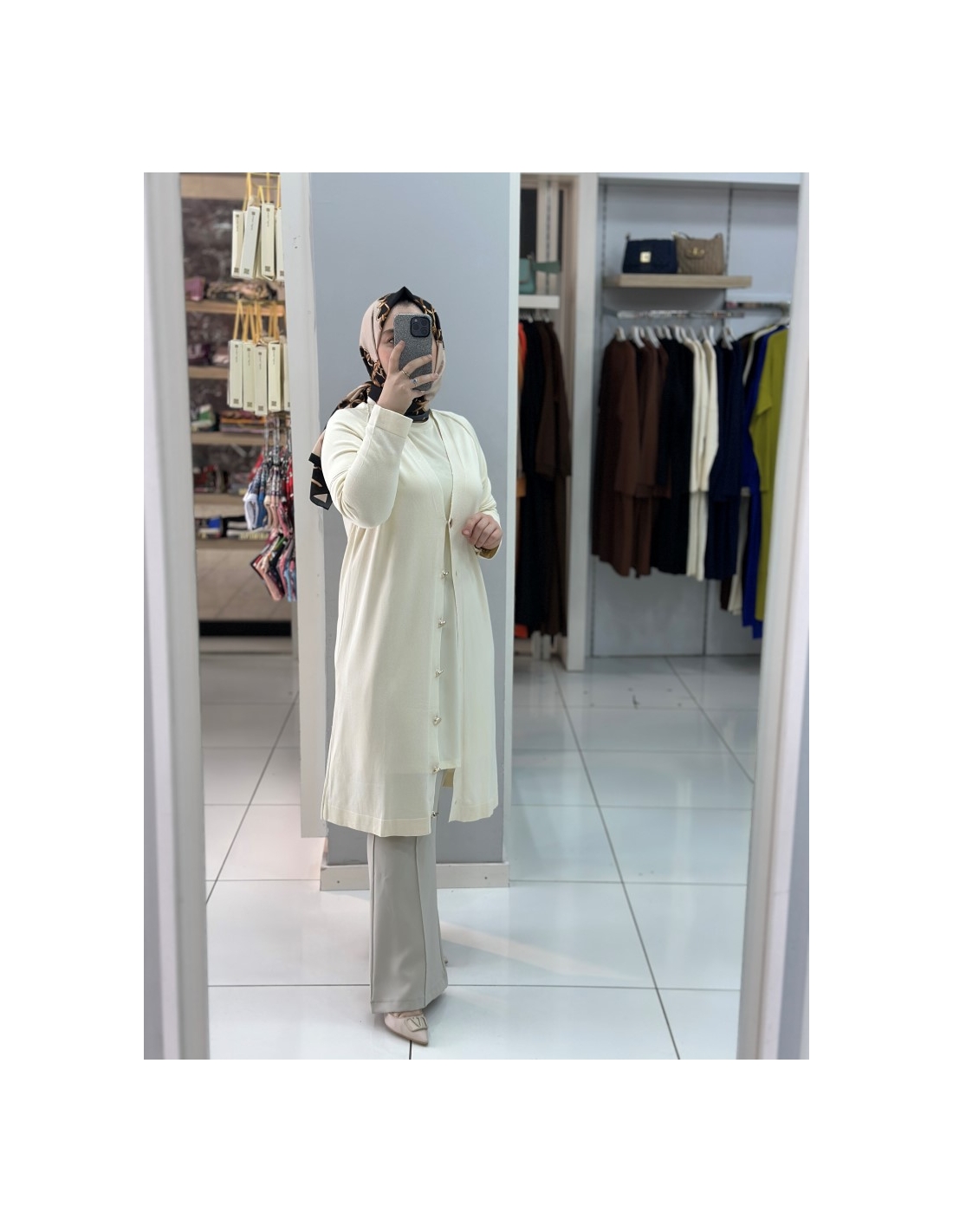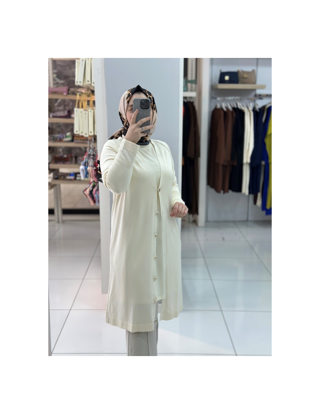 Düğmeli Merserize Hırka 999 KREM