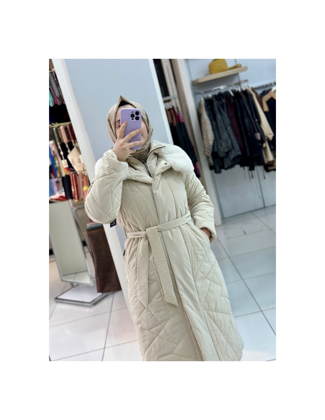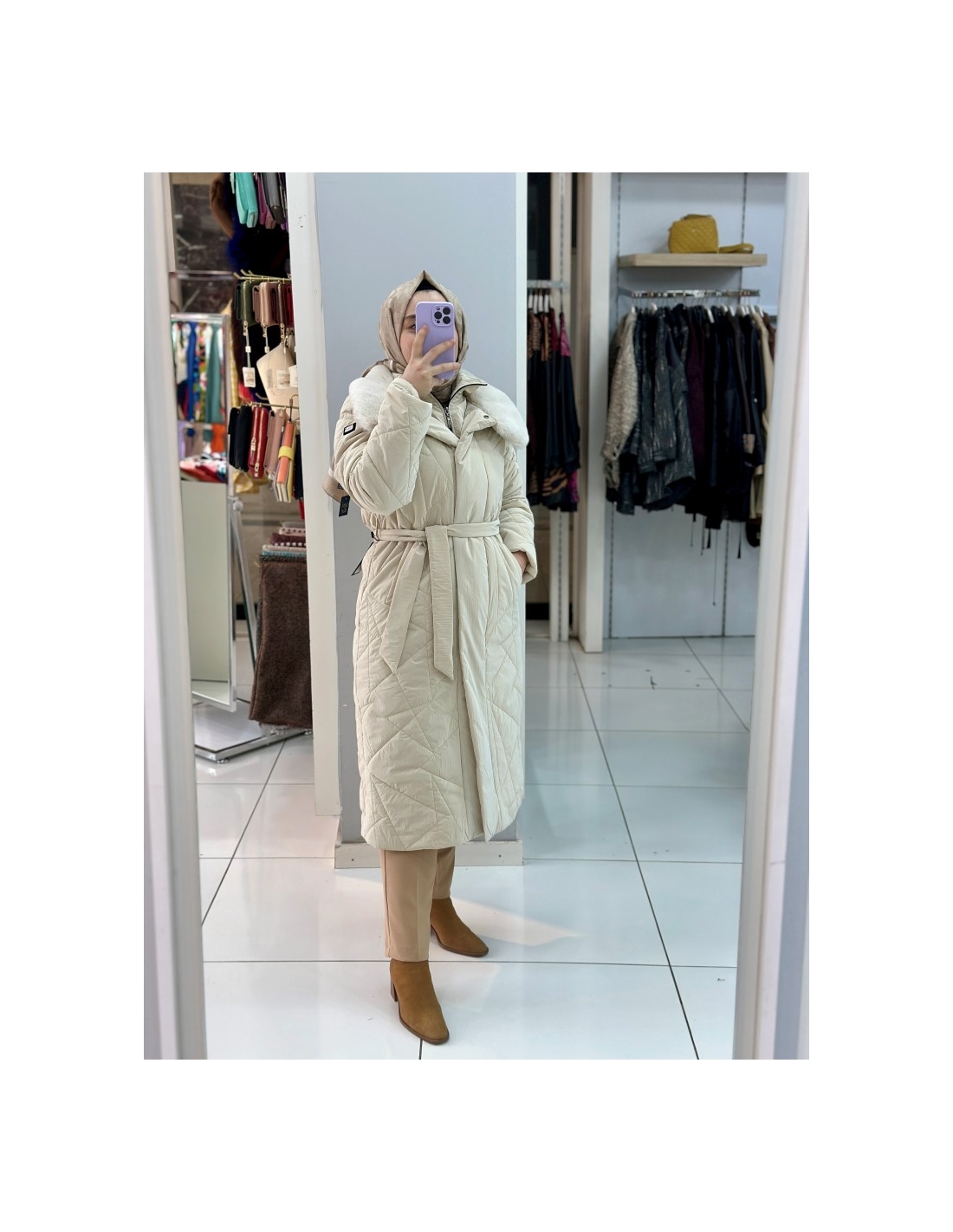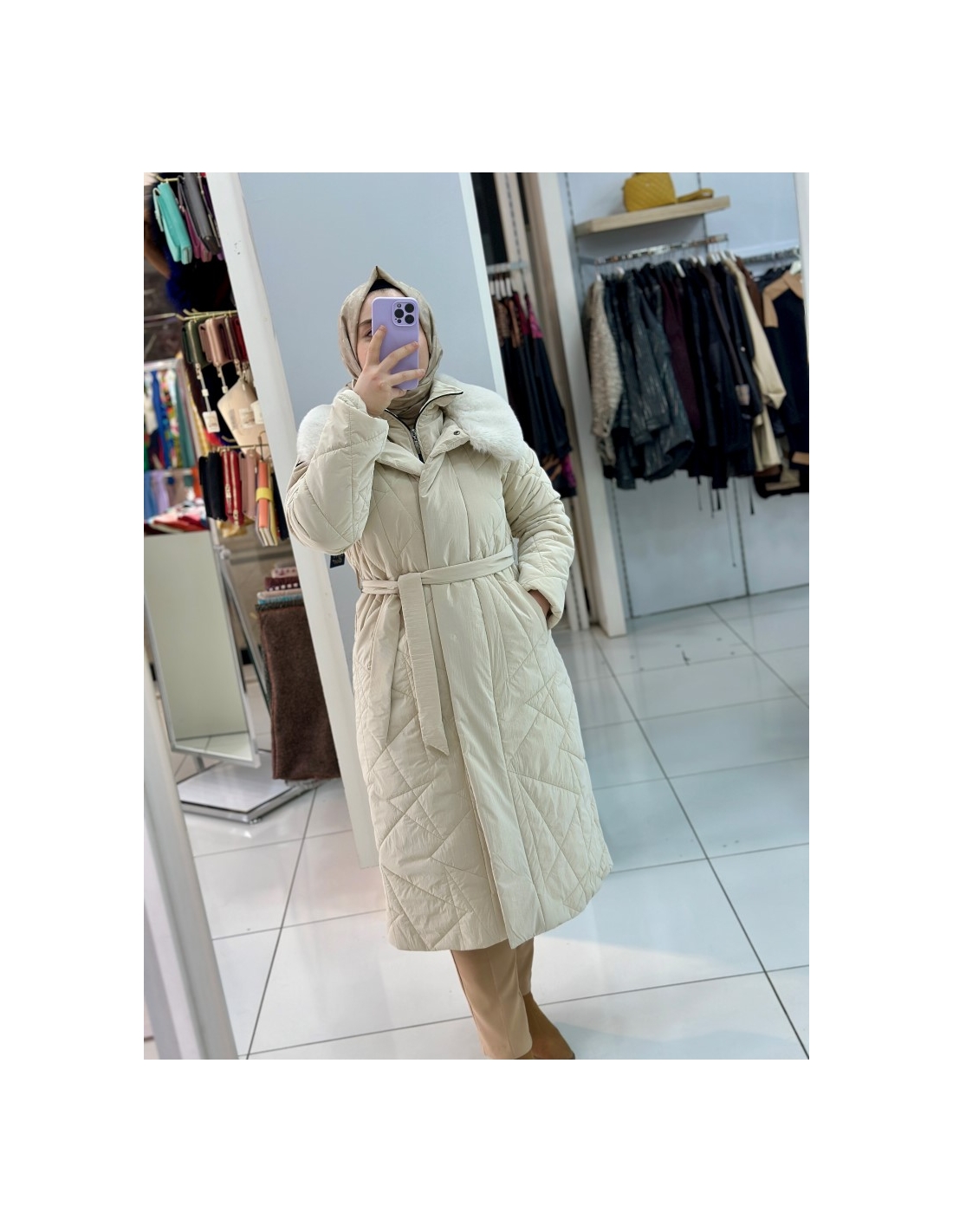 N Prive Asimetrik Desen Kürklü Şişme Mont