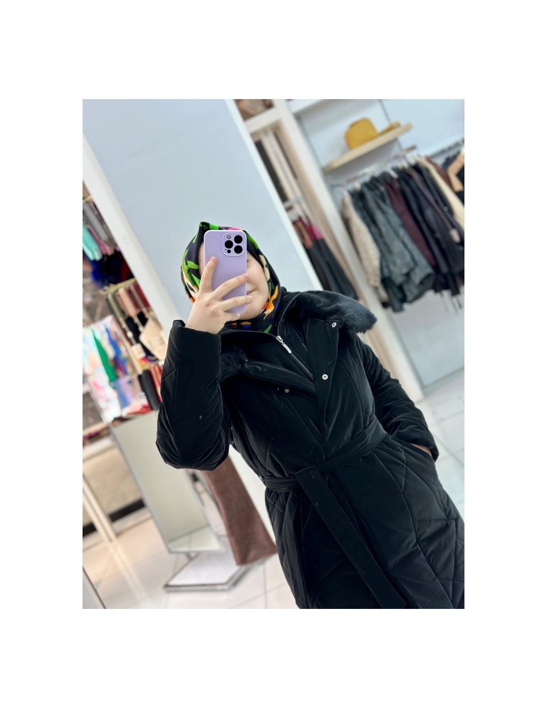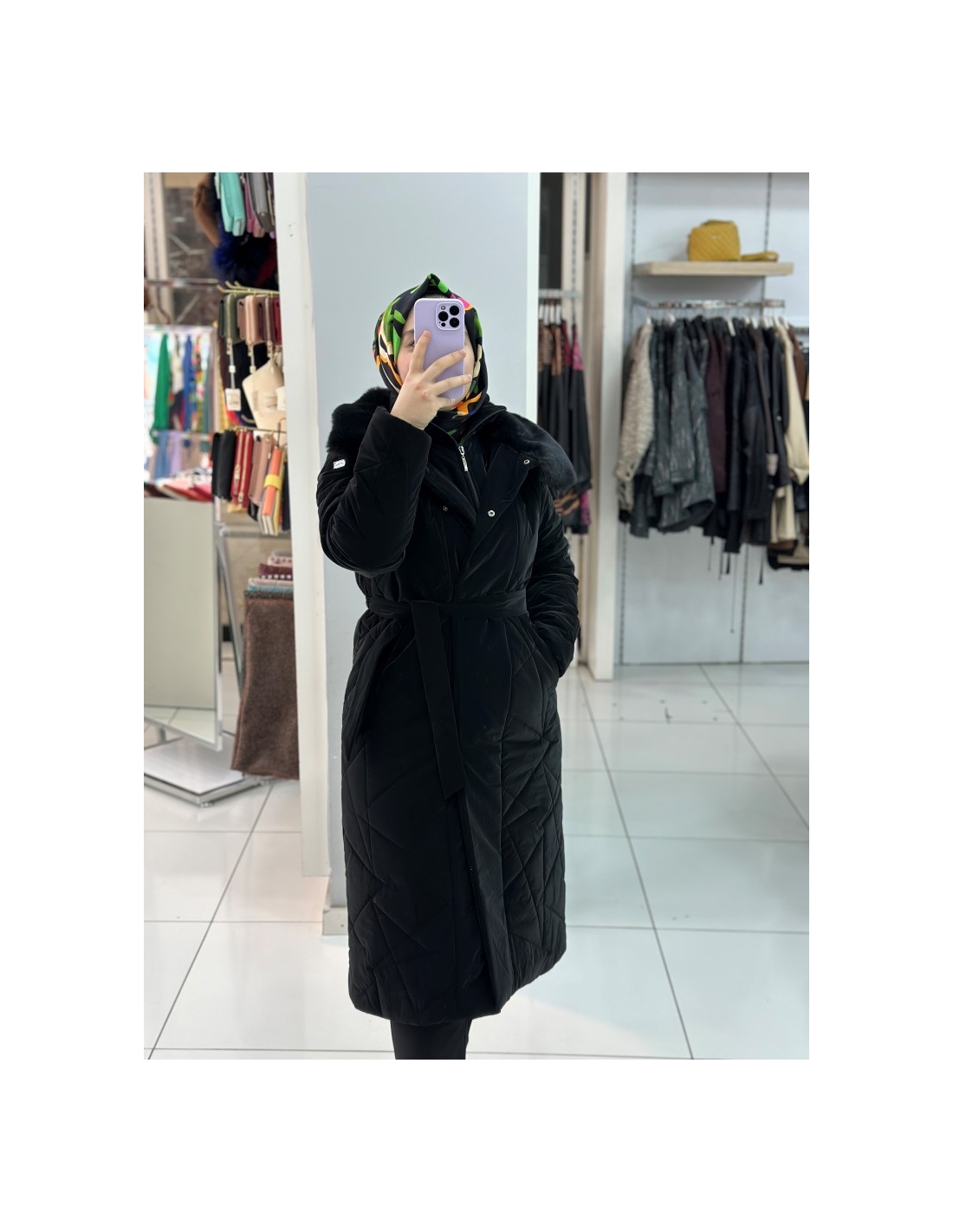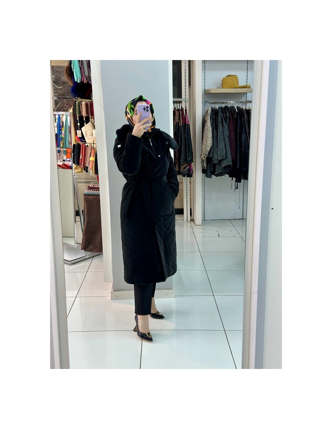N Prive Asimetrik Desen Kürklü Şişme Mont